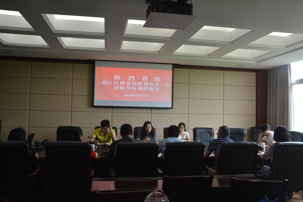 2018年6月7日上午,温江区商务局局长陈莉、纪检组长马露、电商负责人黄松、新媒体负责人何静一行到校开展本土电商调研。出席本次调研会有学院副院长向宏志、经管系主任梁栋、经管系总支书记郑海波、经管系副主任王琦...
