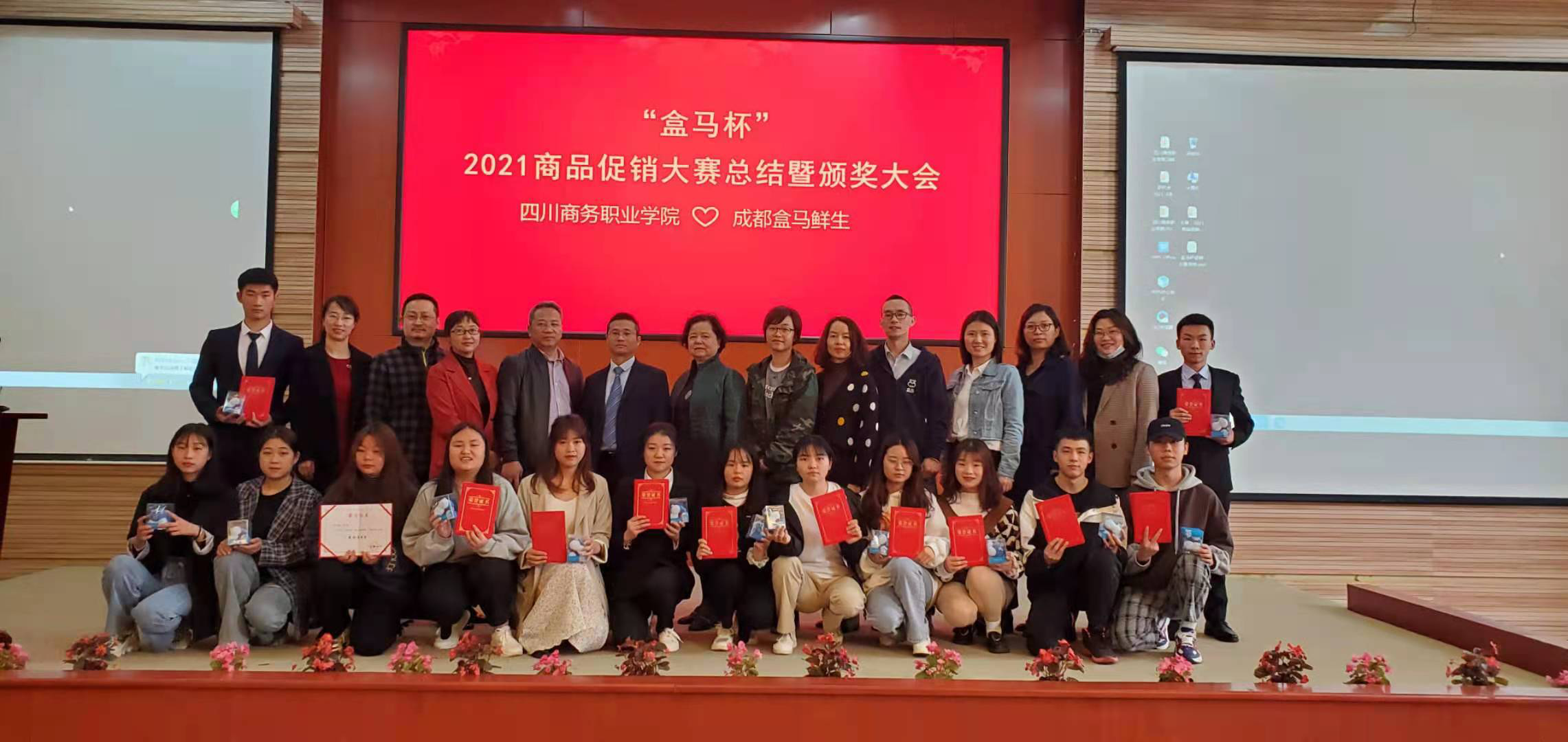 413日下午,经营管理系举办“盒马杯”商品促销大赛总结会暨颁奖仪式。参会嘉宾包括盒马(中国)有限公司全国校企合作HRG赵佳琼、盒马(中国)有限公司四川校企合作HR冯小静、盒马(中国)有限公司温江店运营副店长郭伟、万象城awcsport官网党委委员副院长许丹雅、万象城awcsport官网实践教学中心主任罗小东、万象城awcsport官网经营管理系主任梁栋、万象城awcsport官网经营管理系副主任王琦、万象城awcsport官网经营管理系物流专业负责人李贤明、万象城awcsport官网经营管理系连锁专业老师、辅导员老师。