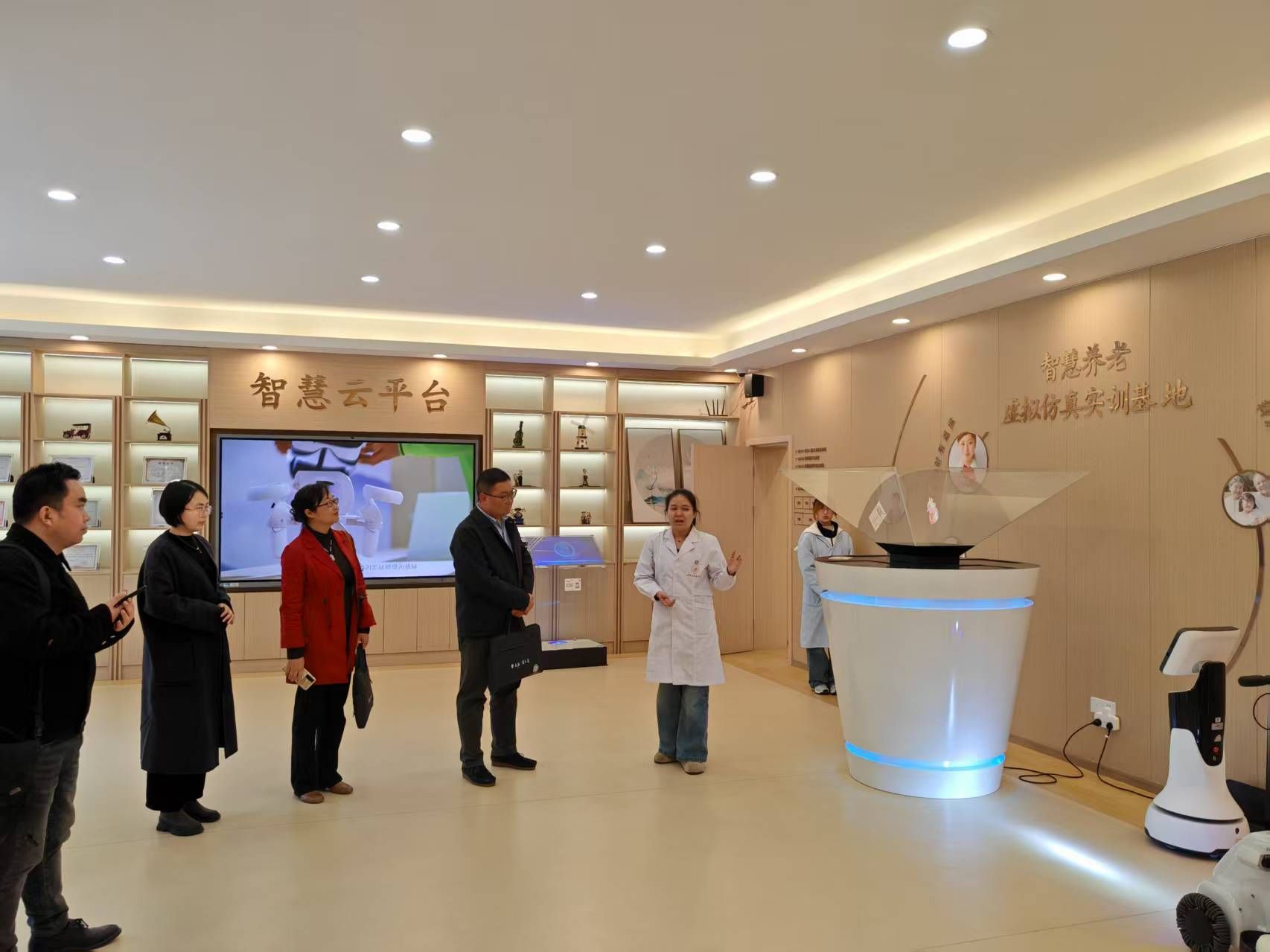 会后,调研组一行还参观了医学与健康学院的老年评估实训中心、失能老人康复照料中心、营养中心和康复实训中心等实训基地。