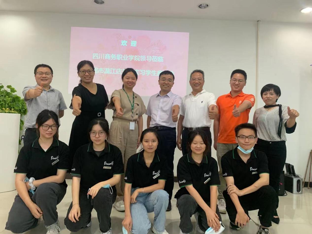 永辉超市人事部经理张亮、浙温眼镜总经理李士运带领院长高司华一行实地参观了实习学生的工作场地和工作岗位,详细介绍了企业的文化、岗位设置、人才需求以及成长通道等方面的内容,同时,对学院人才培养质量和学生的工作表现给予了充分的肯定。