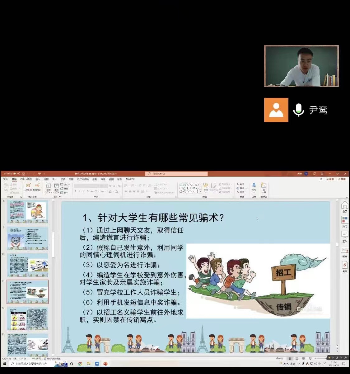 各带班辅导员老师分别从大学是什么、如何渡过大学生活、如何防止网络诈骗、如何获得奖助学金等多个方面进行介绍;我系还邀请了学生处心理健康中心的老师为学生带来心理健康第一课。
