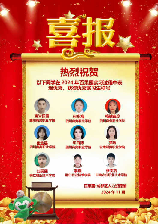 经营管理系学子荣获百果园2024年“优秀实习生”称号