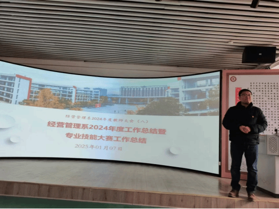 2025年1月7日下午2:00,经营管理系教师大会在实训楼107室如期举行。出席本次会议的有经营管理系主任王琦、经营管理系党总支书记杨洪和全系教师。会议由系党总支书记杨洪主持。