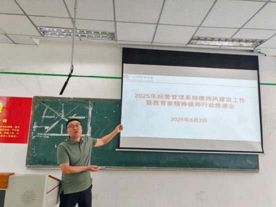 2025年6月3日,万象城awcsport官网经营管理系在1202教室召开了2025年度第四次教师大会,会议于14:00准时开始,全体教师参会。本次大会围绕师德师风建设、教育家精神学习、意识形态工作及学生实习部署等主题展开,内容丰富,意义深远。