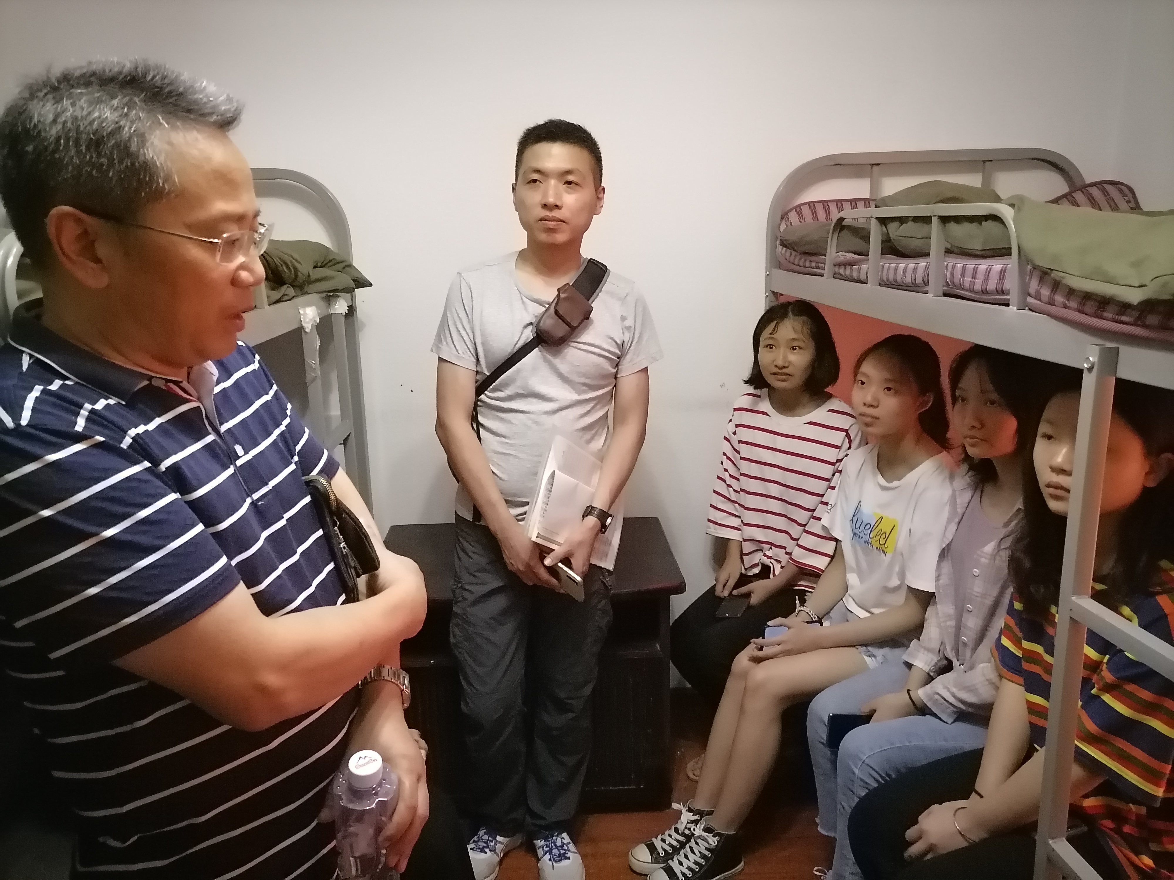 梁主任、郑书记、王主任、企业刘经理到学生寝室