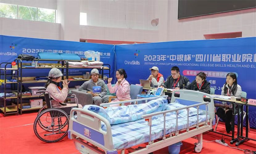 本次竞赛持续2天,比赛方式对标国赛,从以人为本的理念出发,依据国家“居家为基础、社区为依托、机构为补充”的养老方式改革,要求选手在居家、社区和医养结合机构三个不同的养老场景中,通过评估、计划、实施和反思等程序,准确运用新型智慧康养设备和照护措施,为老年人提供专业、规范的照护服务,使其照护需求得到满足,促进其身心健康和疾病康复,提高生命质量。