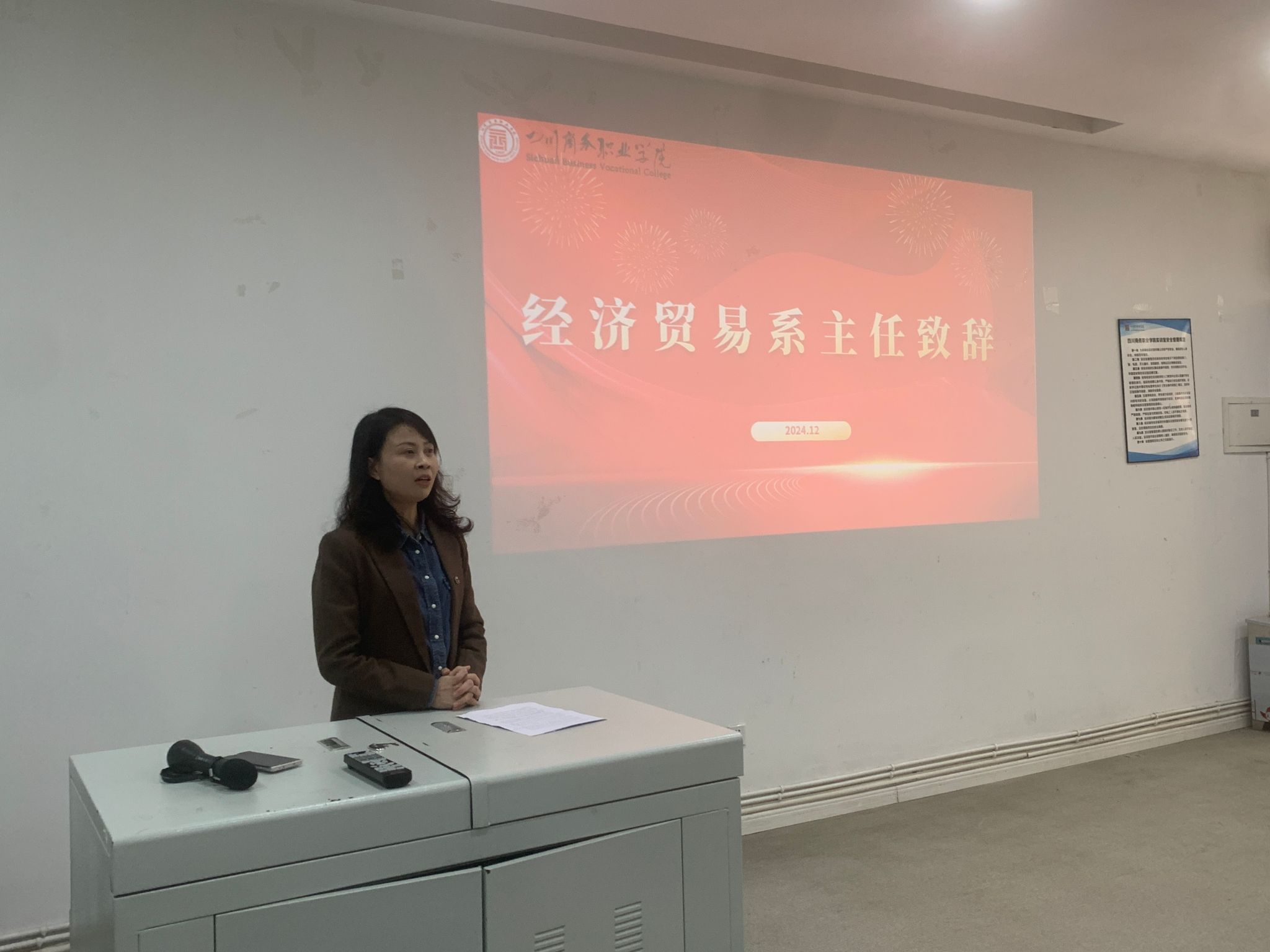 12月5日,经济贸易系与成都九天家私有限公司在学院商品陈列室举办了校企合作实训项目总结会。九天家私新媒体运营中心总监徐娟、人事部经理廖佑君、新媒体运营技术主管罗超;学院教务处副处长刘磊、经济贸易系党总支书记管齐峰、系主任张莉及实训指导教师和学生代表参加会议。