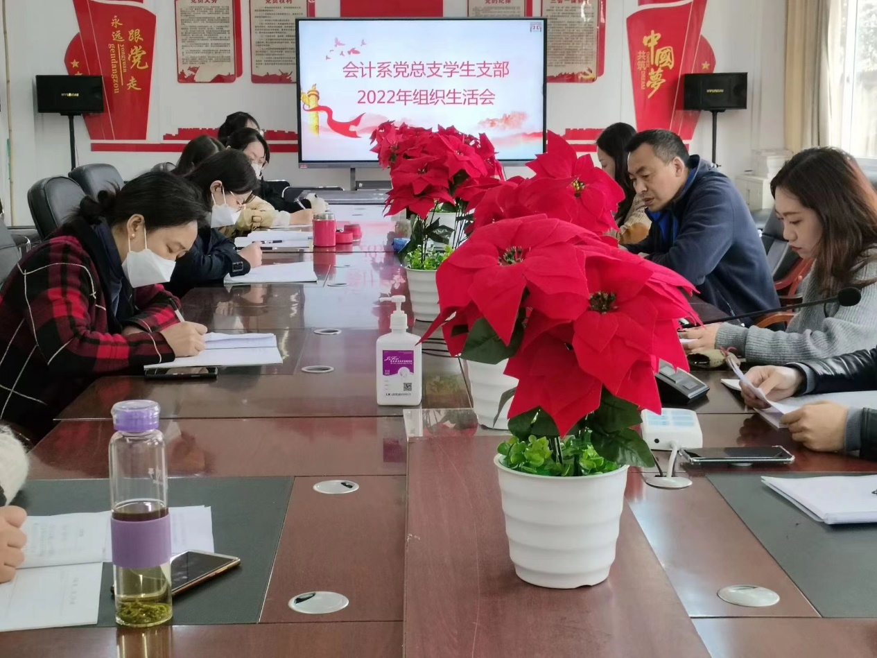 按照学院党委和系党总支有关工作安排,3月14日上午,会计系党总支学生支部全体党员同志在文家校区1103会议室召开2022年度组织生活会。会议由支部书记刘开伟主持,党总支书记周发强以普通党员身份参加本次会议。