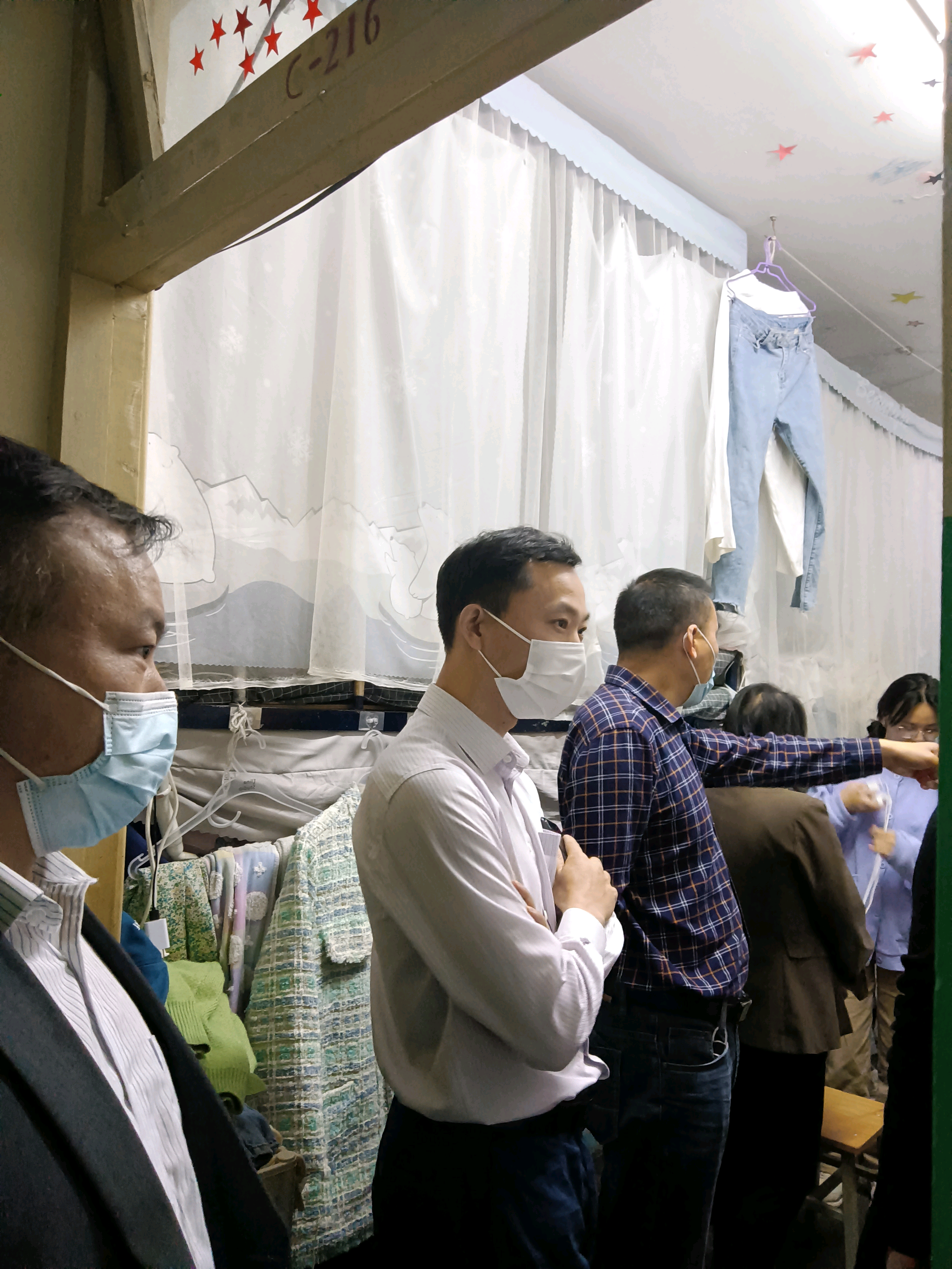 领导老师进入寝室后,向宿管阿姨询问了解同学们在日常生活中遇到的问题并给予了生活建议,同时对寝室卫生进行检查。在查寝中,老师们逐一进入每间宿舍,深入细致地检查每间宿舍的卫生等情况,并与学生们进行亲切交谈,详细了解每位学生的思想动态及生活状况。系领导鼓励学生一定要加强宿舍公共卫生和个人卫生,要勤洗手,多通风,出门戴口罩,现下仍处于疫情期间,集体生活一定要做好卫生防疫工作。也可利用休息时间学习知识,劳逸结合。老师们亲切地问候,浓浓的关切之意,受到了同学们的欢迎。整个过程进行得十分顺利,各寝室同学都积极配合。检查之后,周书记叮咛同学们一定要注意寝室安全,安全用电,禁止晚归,同时要注意保持寝室的整洁。