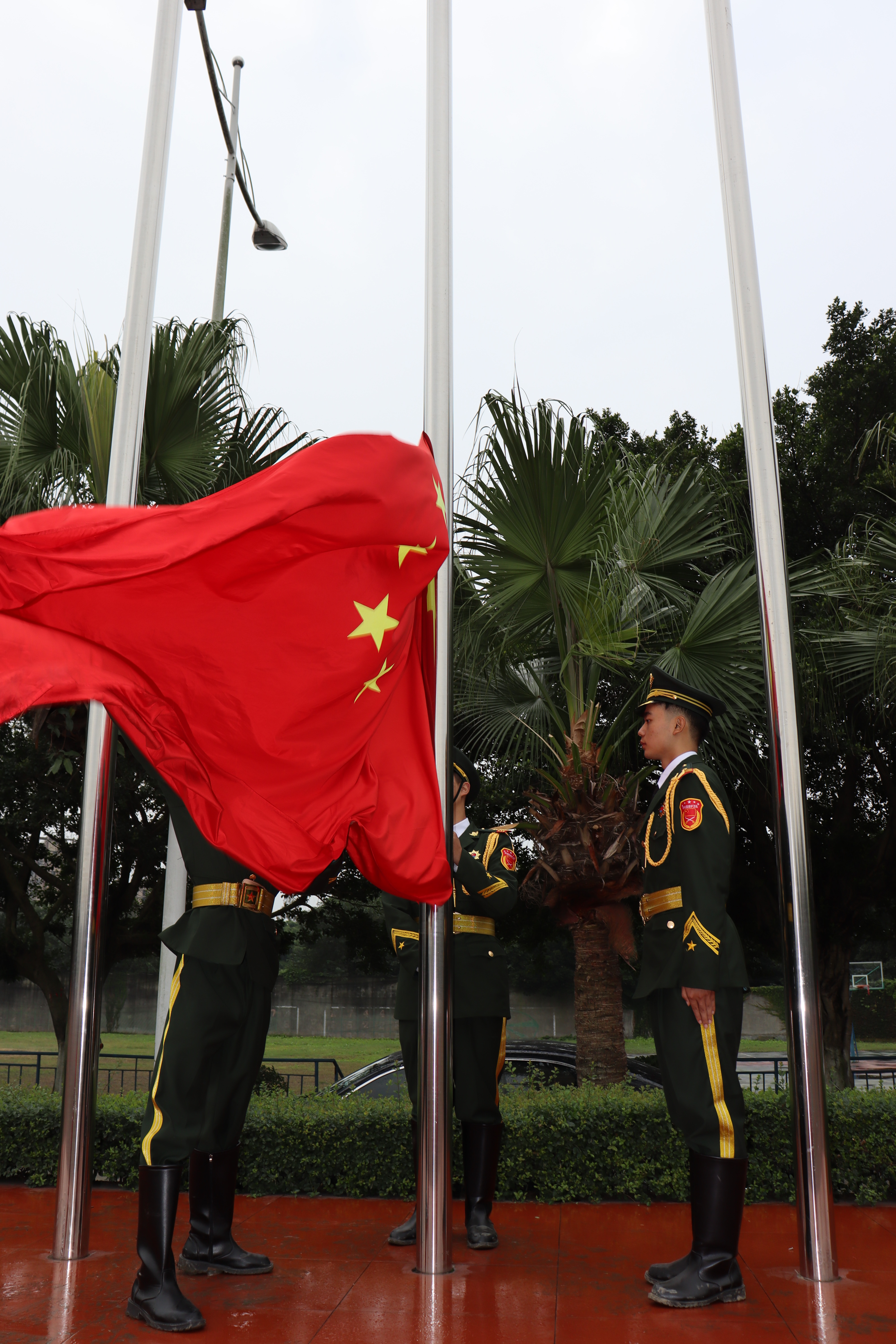 本次军训结训典礼由学院副院长官培生主持。汇报表演在神圣而庄严的国歌声中拉开帷幕,伴着慷慨激扬,催人奋进的进行曲,国旗班学子迈着坚定而整齐的步伐入场。在雄壮的国歌声中,鲜艳的五星红旗冉冉升起。在教官的带领下,全体新生以嘹亮的口号,严密的纪律,过硬的素质,接受学校领导的检阅。