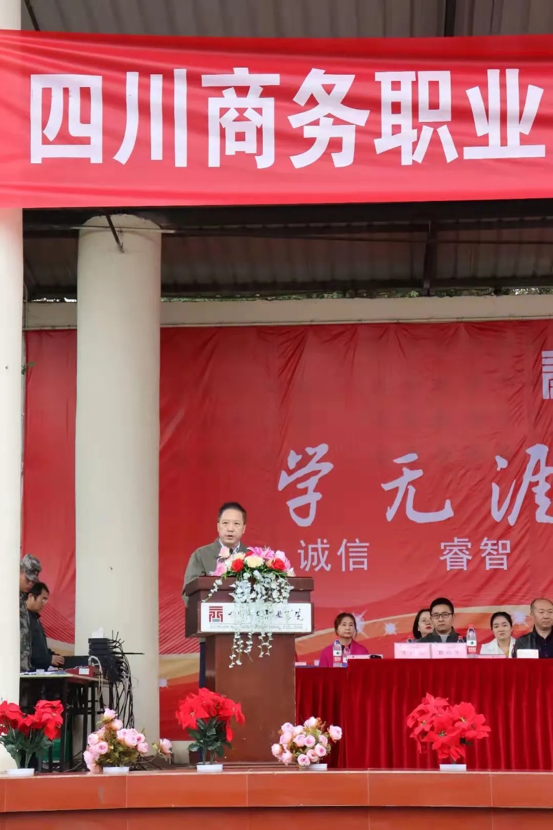 学院党委书记唐珂发表了热情洋溢的讲话,他向顺利完成军训的全体新生表示了热烈的祝贺!也讲到了以后同学们一定要谨记军训的刻苦精神。以后在学习中要做到增强集体意识,团结合作!要做一个对国家,对社会有用的人。