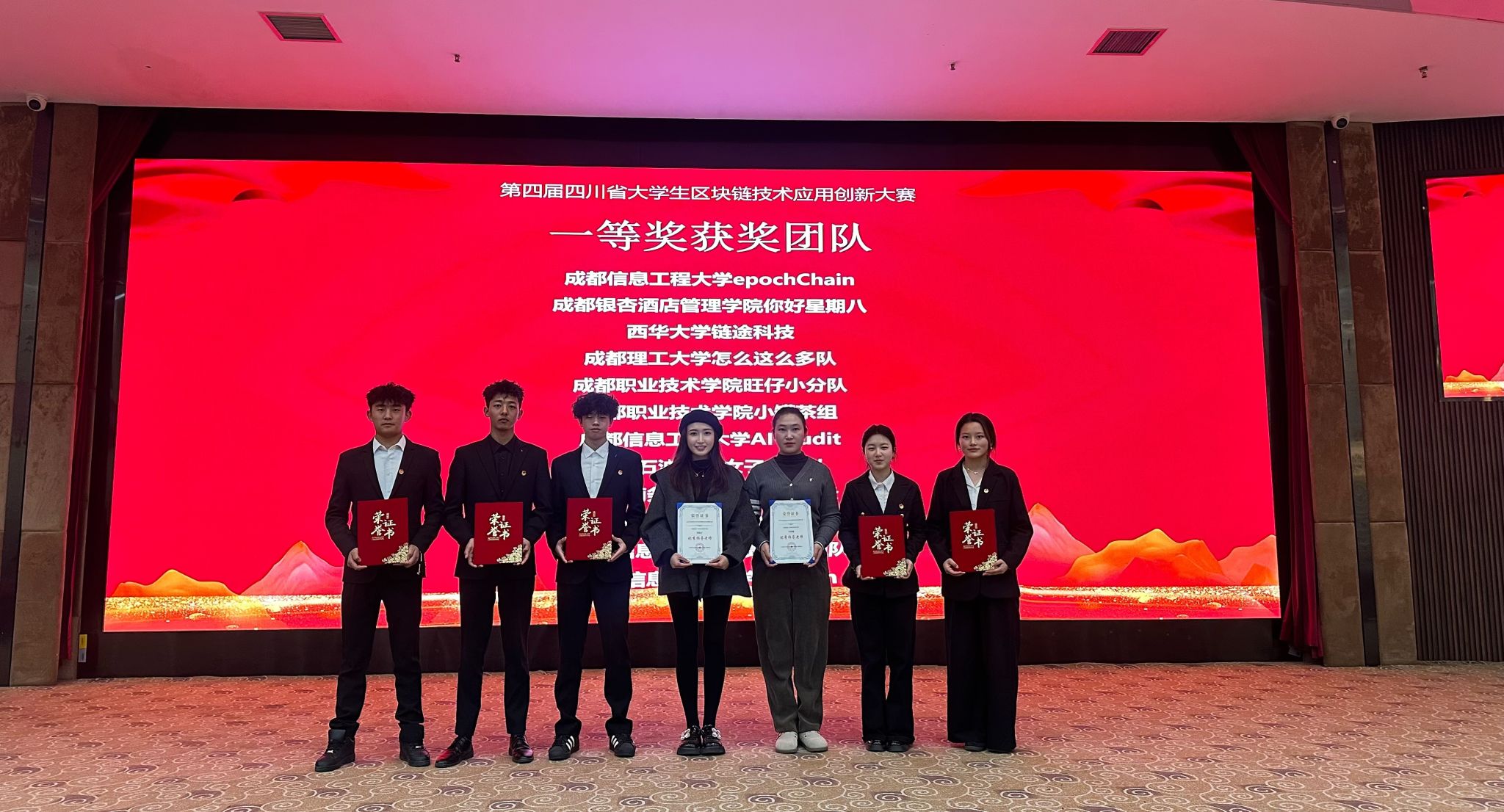 11月22日,2025年四川省区块链技术应用创新大赛决赛在成都圆满落幕。学院会计系代表队与来自全省众多本科院校和高职院校的优秀队伍同台竞技,凭借其创新的思维和扎实的技术能力,在比赛决赛中脱颖而出,最终斩获一等奖1项、三等奖2项的优异成绩,充分展现了万象城在跨学科复合型人才培养方面的显著成果。