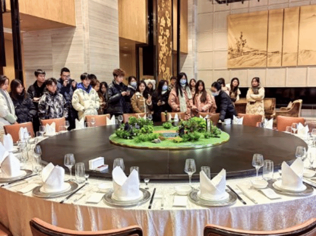 旅游管理系2022级酒店管理与数字化运营专业三个班124名学生在餐饮服务与智能管理、酒店营销实务两门课程教师的带领下,分别于12月15日、12月20日、12月22日,赴成都恒邦天府喜来登酒店、新希望高新皇冠假日酒店、成都非遗博览园缇沃丽酒店三个校企合作酒店开展现场教学。
