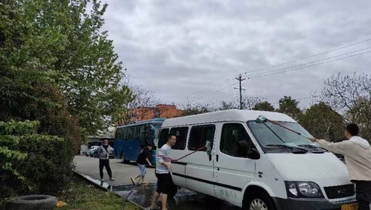 “学雷锋,见行动” 旅游管理系青年志愿者服务队开展校车清洗志愿活动