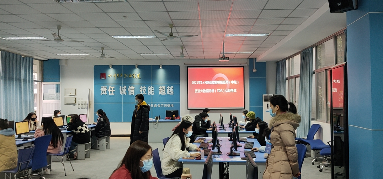 12月25日,旅游管理系开展了1+X旅游大数据(TDA)职业技能等级证书(中级)考核。在教务处、实践教学中心、1+X推进办、后勤保卫处、防疫办和评价组织的大力支持下,文体旅游专业群30名学生进行了理论考试和实操考核。