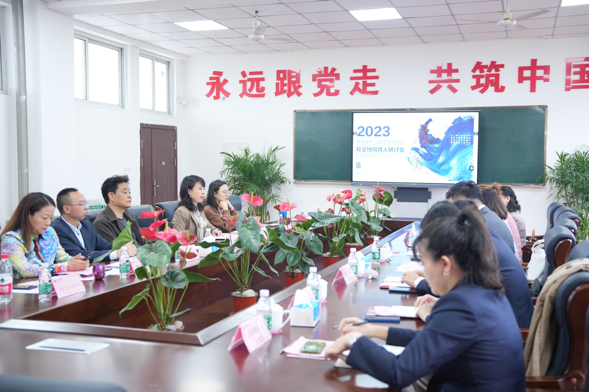 随后各企业代表从用人需求、共享资源、在岗学生综合实训情况及产教融合成功案例等方面进行了发言,并就校企进一步深入合作表达了强烈的意愿。在自由交流发言环节中教师代表分别结合教学、专业发展、学生管理与企业做了沟通,学生代表从自身发展方向与企业零距离交流。