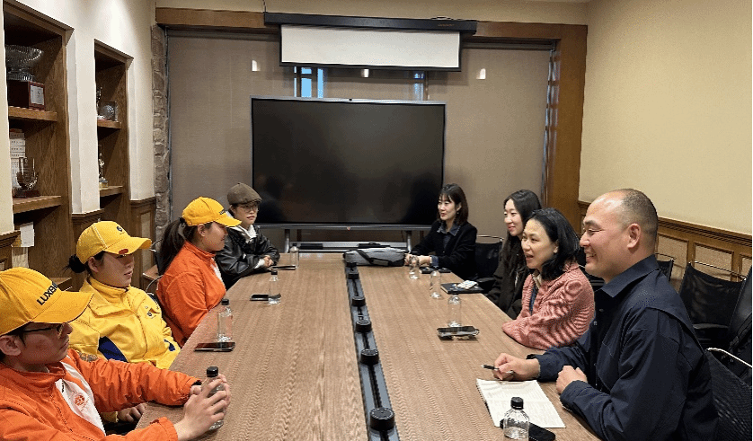 首先,麓山国际社区高尔夫会所谢总对我系22级实习生在岗情况做了全面介绍;同时,我系实习学生也畅谈了在岗实习期间的收获和想要继续留在该岗位继续深造的愿景。