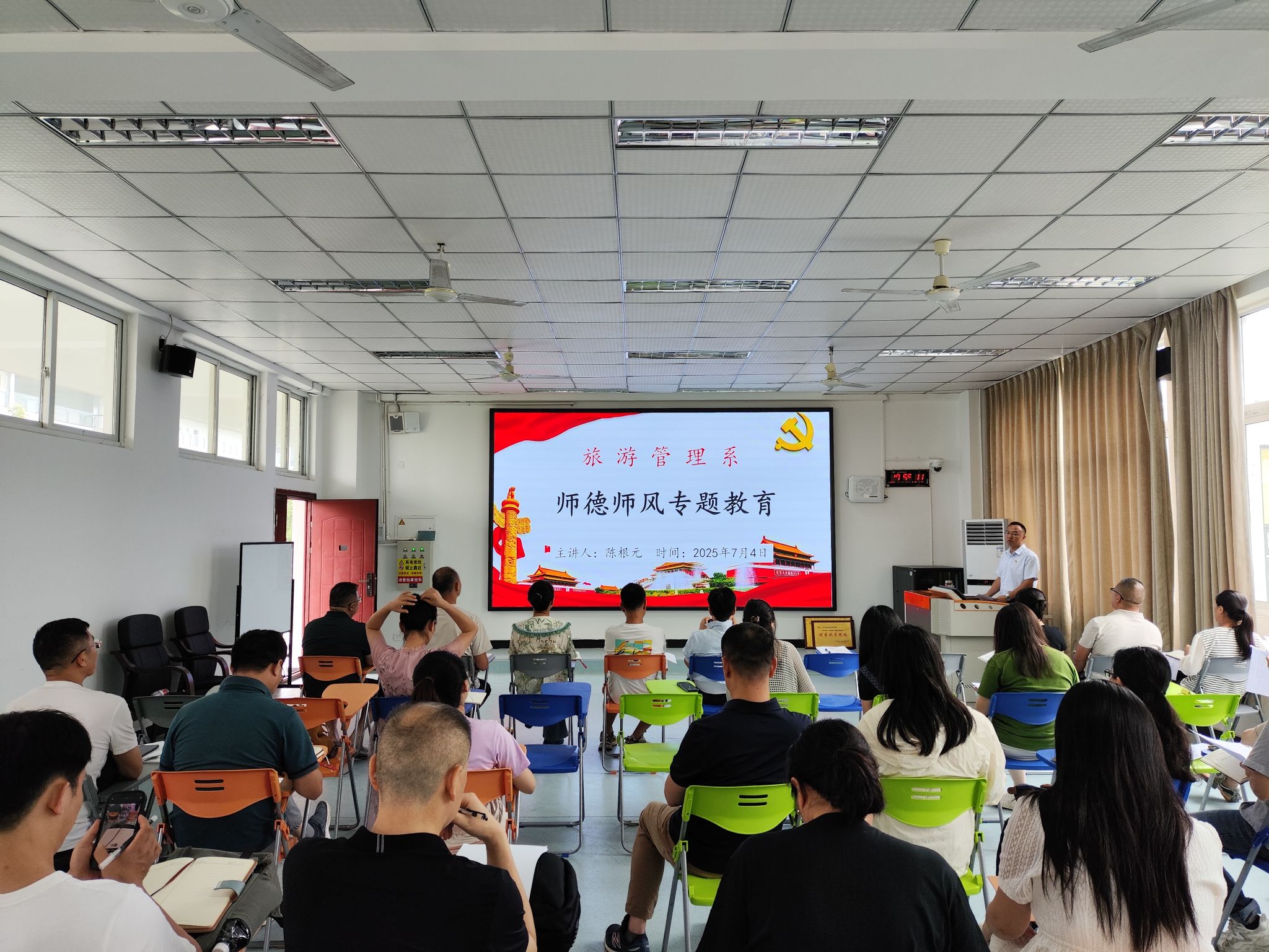 2025年7月4日,旅游管理系召开全系师德师风教育专题工作大会,深入贯彻习近平总书记关于教育的重要论述,落实中央《关于全面深化新时代教师队伍建设改革的意见》及上级部门部署,推动教师队伍高质量建设。系党总支书记陈根元出席会议并发表题为《筑牢师德根基 厚植育人情怀》的讲话,为全系教师指明师德建设方向。提高政治站位,筑牢立德树人根基陈根元强调,教师是立教之本、兴教之源,师德师风是教育的生命线。全系教师需以“高度重视”...