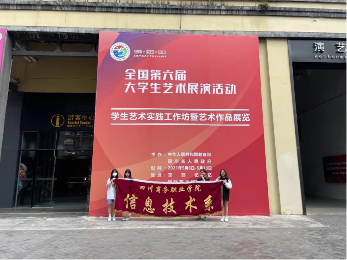 5月6日晚,由教育部、四川省政府共同主办的全国第六届大学生艺术展演活动在成都城市音乐厅开幕。此次活动由198所高校264支代表队的6800余名师生参加现场展演,其中最重要的两项活动:大学生艺术实践工作坊、艺术作品展和高校校长书画摄影作品展。5月9日,我系由学生会主席王玲梅为代表,带领王宇、祝睿、李浪、朱明月一行五人,前往东郊记忆·国际艺术展览中心,一起打卡第六届大学生艺术展。
