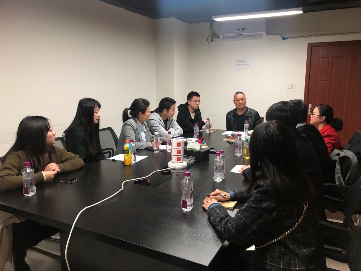 会前,由成都西华升腾科技有限公司的技术总监赵总,带领大家参观公司,并为各位老师介绍公司的发展概况,阐述公司目前主要是研发高职院校学生管理软件,与全国200多家院校合作,涉及的业务有招生、迎新、学工等项目,希望通过多方面的合作,吸引更多的大学毕业生来成都西华升腾科技有限公司发展。